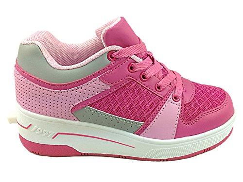 Foster Footwear offer Girls Boys Kids Wheely Wheeled Sole Lace Up Low Top Skate Trainers Size 11-5 (UK 3, Pink). This awesome product currently limited units, you can buy it now for £20.00, You save -