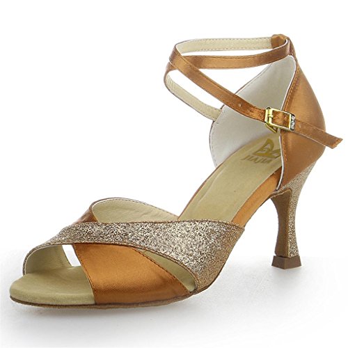 JIA JIA offer Jia Jia Y2051 Latin Women's Sandals 2.7'' Flared Heel Super Satin with Sparkling Glitter Dance Shoes Tan Color , 6.5 UK / 40 EU. This awesome product currently limited units, you can buy it now for £49.99 £23.99, You save £26